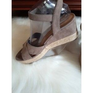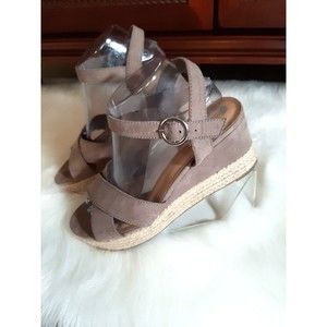 Big Budda Women's Size 9 Tan Suede Criss Cross Straps Espadrille Wedge Sandals. Some Wear, Good Condition!