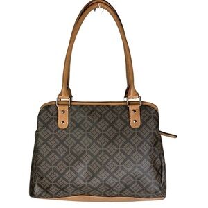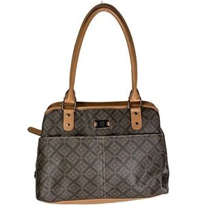 Big Buddha 2 Tone Brown Logo Pattern 3 Large Compartment Top Zip Satchel Handbag