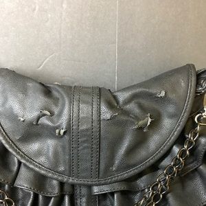 This a used purse/shoulder bag. It foes show wear and tear from very heavy use. It does have some stains, scuffs, scratches, and fraying. Please take a look at pictures for a better idea.