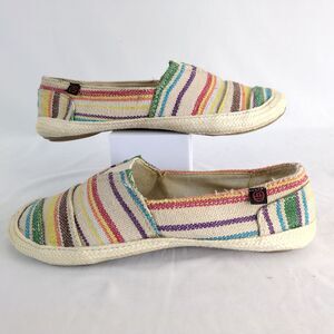 Big Buddha Breeze Women's 9 Striped Canvas Fabric Slip-On Flats Shoes Indie Boho