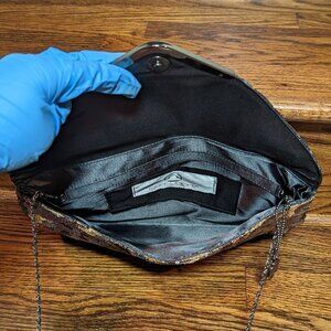 Big Buddha Gunmetal Snakeskin and Sequin Envelope Clutch EUC