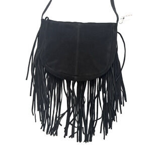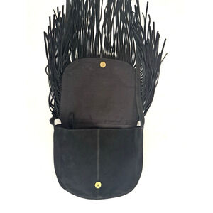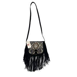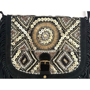 Big Buddha Shoulder Crossbody Bag Black Suede Fringe Gold Beaded Bohemian - NWT