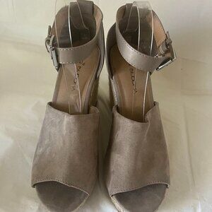 Big Buddha Womens Espadrille Sandals High Wedge Heel Taupe Open Toe Size 11