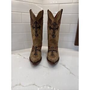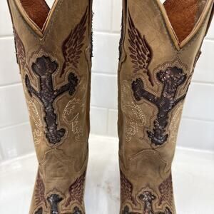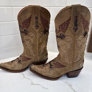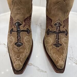 Big Bull Womans Sequined Inlay Distressed Pointed Toe Western Boots Sz 22 US 5.