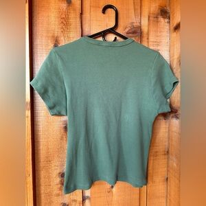 An updated take on the classic baby doll tee! Always hang dried. Brand label print shows the most wear. Runs on the smaller side of L but has a lot of stretch to the fabric.