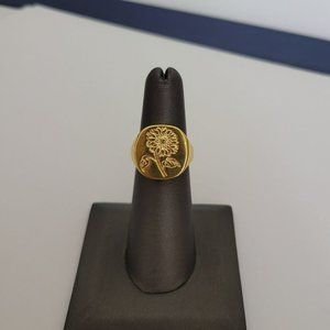 🌸 Big Carved Sunflower Engraved Floral Gold Signet Ring