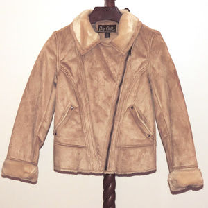 Big Chill faux fur tan/beige moto winter jacket.
