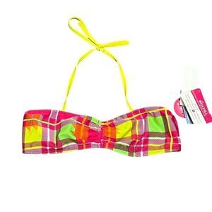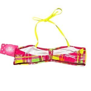 Big Chill Swimwear Pink And Yellow Plaid Bikini Top, Size 14/16 Girls, NWT