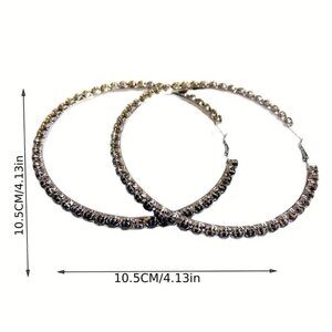Eye-catching Design: Big circle hoop earrings with sparkling rhinestones inlaid, perfect for making a statement and standing out from the crowd.
