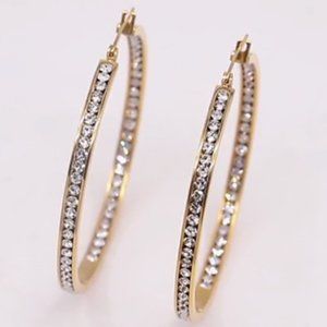 Gold hoops with clear pave channeled rhinestones