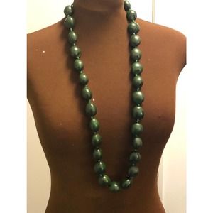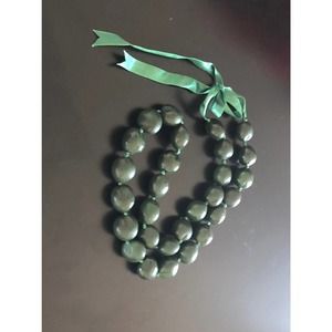 Big Dark Green Bead Necklace. Ties in the back with a ribbon. Don’t have information on brand or where originally purchased. Possibly handmade & purchased at a thrift shop.