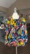 Measures 22 inches pit to pit and 25 shoulder to hem in front and 29 inches back
