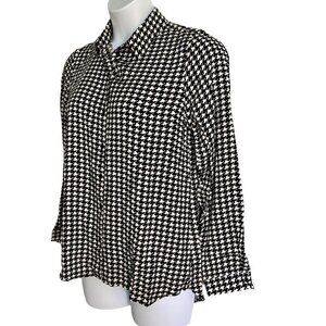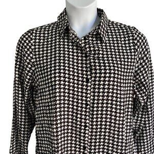Big Dart Black White Button Down Long Sleeve Women's Blouse Top Large NEW NWT