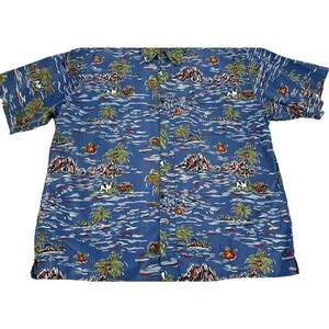 Big Dogs Blue Hawaiian Shirt Button Up Short Sleeve Palm Island Blue Mens Size L