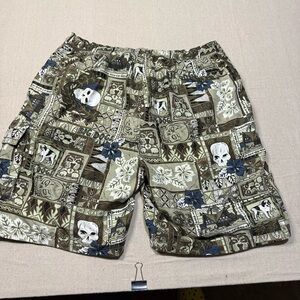 Big Dogs Blue Swim Trunks Mens Large Hawaiian Drawstring Vintage Skulls See pictures for reference and measurements
