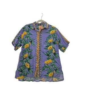 Big Dogs California Poppy Rayon Button Down Shirt Men's Size Small Vintage Blue