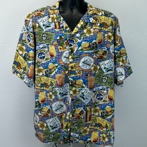 Big Dogs Hawaiian Camp Shirt Trader Dogs Rum Button Front Button Up Button Down Rayon Blue XXL 2XL