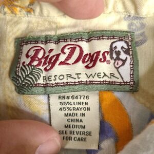 Big Dogs Hawaiian Shirt Men's Medium Yellow Linen Blend Button Down Get Er Done