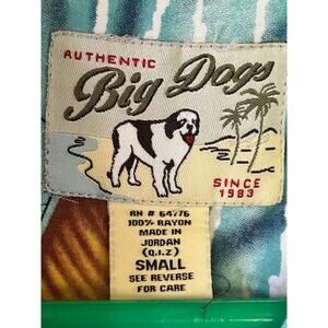 Big Dogs Hawaiian Shirt Small Rayon Island Surf Print, Vintage Style Aloha Shirt