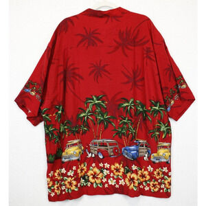Big Dogs Hawaiian Surf Wagon Shirt Short Sleeve Summer Floral Beach Vibes 2X Red