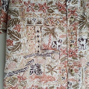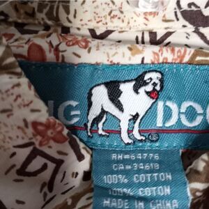 Big Dogs L White Brown Tropical Design Shrt Slve Pocket ButtonUp Shirt Mens