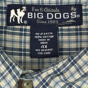 Big Dogs Men’s 4X Plaid Shirt Blue Cotton Button Front Short Sleeve Casual. Excellent Preowned Condition.