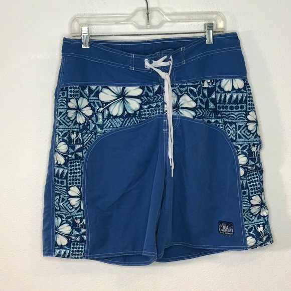 Big Dogs Men's Hawaiian Floral Board Shorts Drawstring Swim Trunks Blue Size M
