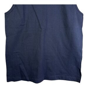 This is a men's tank top from the brand Big Dogs in size Large. The tank top is in solid black color with an embroidered script logo, giving it a vintage 90s style. It features a crew neck and sleeveless design with a relaxed fit. The material is a blend of polyester and cotton, making it machine washable. The tank top is perfect for those who love dogs and dad-themed clothing.