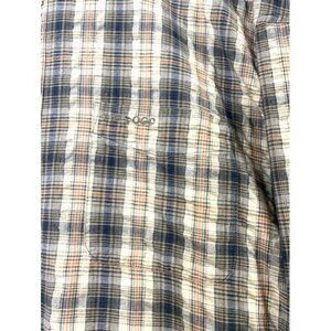 Big Dogs Men's Plaid Short-Sleeve Button-Down Shirt 4X Blue/Beige Cotton Casual