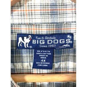 This Big Dogs short-sleeve shirt offers a roomy 4X fit, featuring a classic plaid pattern in blue and beige. Made from breathable 100% cotton, it ensures comfort and durability.