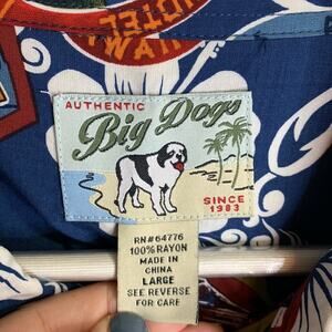 Big Dogs Mens Shirt Button Up Blue Hawaiian Tiki Casual Camp Shirt M-079 Sz L