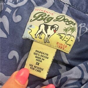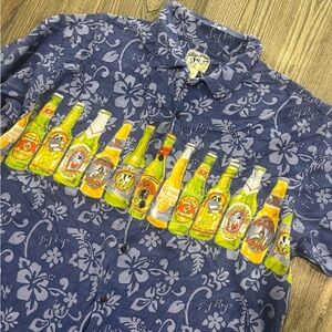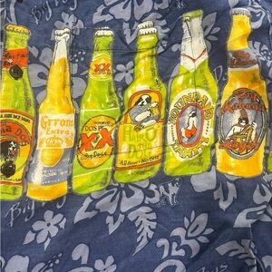 Big Dogs Shirt Hawaiian Button Up Beer Bottles Aloha Floral Print Bue Size 3X
