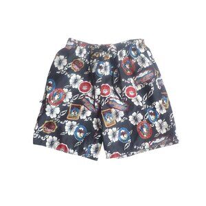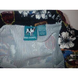 Big Dogs Swim Trunks Shorts Black Aloha Vacation Tropical Mesh Lined Mens L