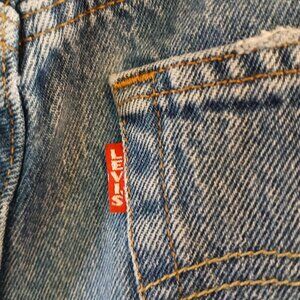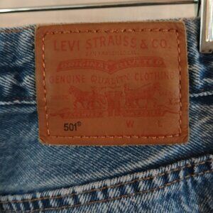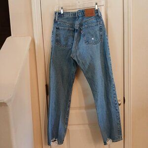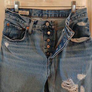 Big E Levi's 501 thrashed distressed straight leg denim jeans with a button fly in size 28x30.