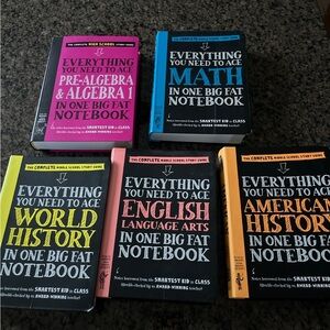 Set of five Big Fat Notebooks for various subjects. Includes Pre-Algebra, Math, World History, English, and American History. Perfect for middle school students. They are like new, only used very little. No markings inside at all.