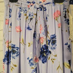 Casual two piece floral printed set with a smocked top and chiffon pants.