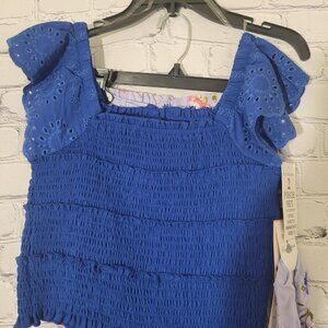 Big Girls 2 Piece Smocked Flutter Top and Printed Chiffon Pant Set