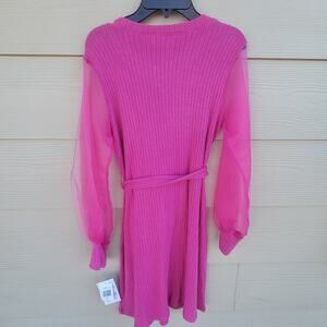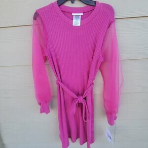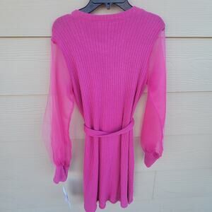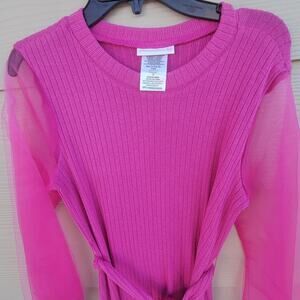 Big Girls Size 12, 14 Sheer Blouson Sleeve Sweater Knit A-Line Dress Pink *