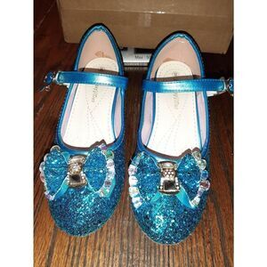Big Kids Girls Size 4 (Label Size 36) Blue Sparkle Glitter Bow Princess Shoes
