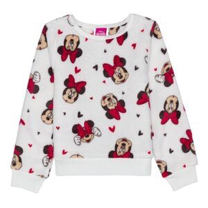 Look adorable in this cozy plush long sleeve pullover featuring a graphic design print of Minnie Mouse.