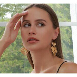 Big Gold Hollow Out Boho Geometric Hook Statement Gold Heart Dangle Earrings
