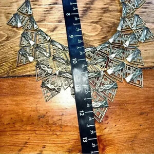 Big Gold tone Statement necklace. Triangular. Long length
