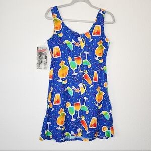 Big Hed Designs Vintage Blue Bar Drinks & Music Print Dress S NWT