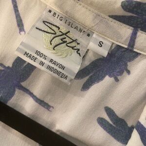 Big Island Size M Sleeveless Shell Button Dragonfly Print Collared Mini Dress