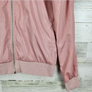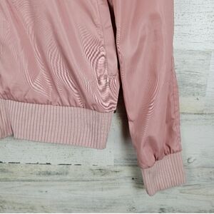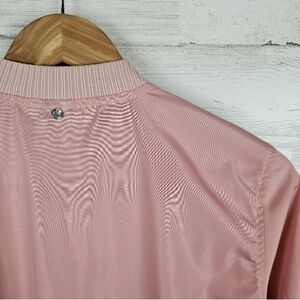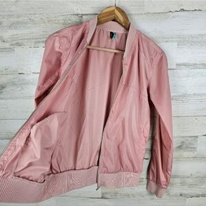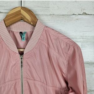 Big John Bomber Jacket Sz Large Pink Zip Front Japanese Ribbed Knit Casual Chic