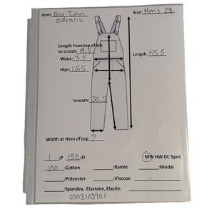 Length from Top of Bib to Crotch: 19.5 in / 50 cm