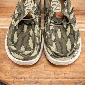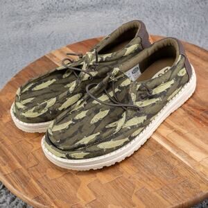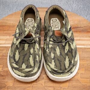 Big Kids Hey Dude Wally Fish Camo Green Shoes Size 5 Y