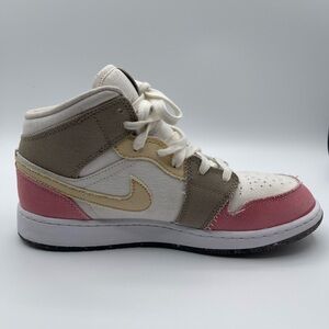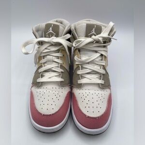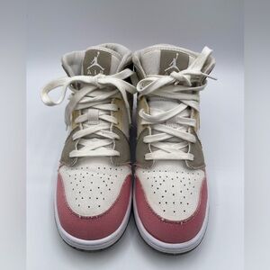 Nike Air Jordan Mid with a stylish blend of pink, cream, and tan. Ideal for everyday wear.
