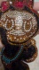 Colorful beaded labubu keychain with a tassel. Features red, black, and blue beads.