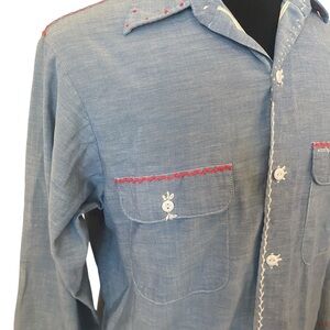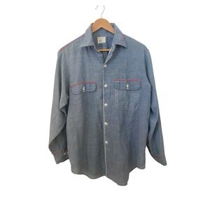 Big Mac JC Penny Mens Vintage Non Iron Blue Button Up Shirt Size Large Embroidered
